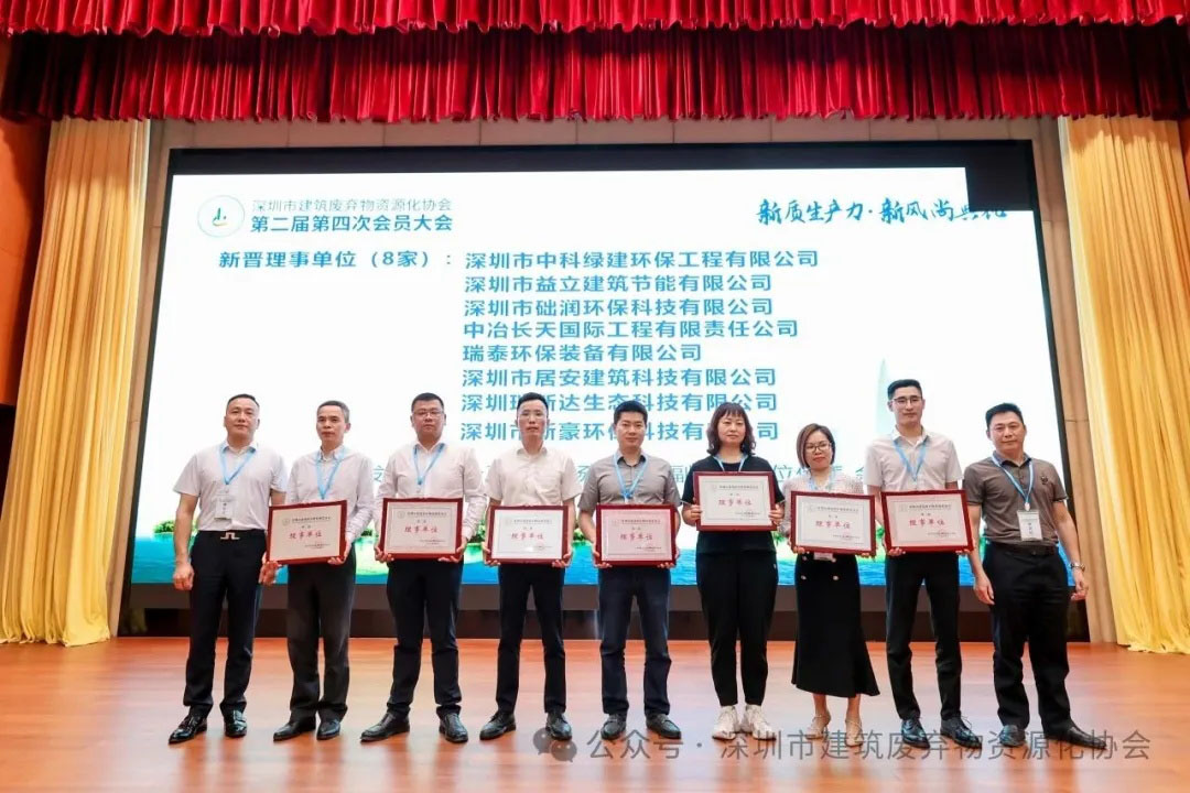 深圳市建筑廢棄物資源化協(xié)會第二屆第四次會員大會暨新質(zhì)生產(chǎn)力·新風(fēng)尚典禮活動,于2024年4月28日下午,在副會長單位中鐵南方投資集團(tuán)有限公司隆重舉辦。協(xié)會業(yè)務(wù)指導(dǎo)單位深圳市建廢辦,胡毅軍主任、高寒科長蒞臨活動現(xiàn)場。深圳市建筑廢棄物資源化協(xié)會會長江建,副會長單位代表劉繼強(qiáng)、李智、徐濤、吳裕明、羅章、楊國平、彭智、余駿鑫以及其他理事、監(jiān)事與會員單位代表共計 86人出席本次會員大會。與此同時,特邀以深圳市建科院陳澤廣院長為代表的專家共12人參加本次活動。本次活動由協(xié)會秘書長王梅玲主持。