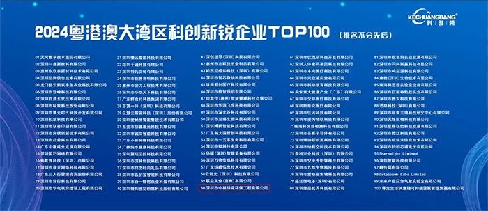 2024粵港澳大灣區(qū)科創(chuàng)榜重磅發(fā)布,恭喜中科綠建環(huán)保成功入選新銳企業(yè)TOP100榜單